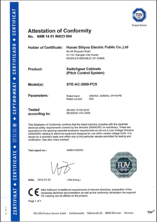 經(jīng)世界權(quán)威認(rèn)證機(jī)構(gòu)德國TUV的嚴(yán)格評審,世優(yōu)電氣風(fēng)力發(fā)電機(jī)組電控系統(tǒng)全系列產(chǎn)品榮獲歐盟CE認(rèn)證。